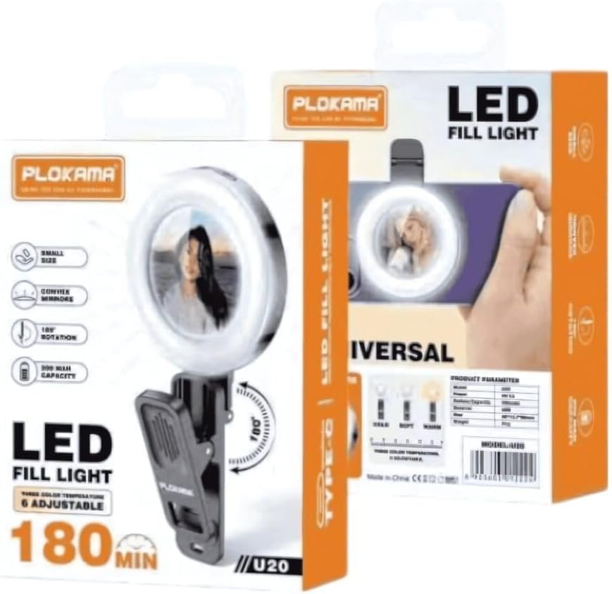 Generic - Mini Ring Light, Upgraded Small Clip On Ring Light, with mirror Portable LED for Phone, 4 Color Lighting Modes and Adjustable Brightness Selfie Light, Ideal for Makeup, Vlogging and Photo (U20)