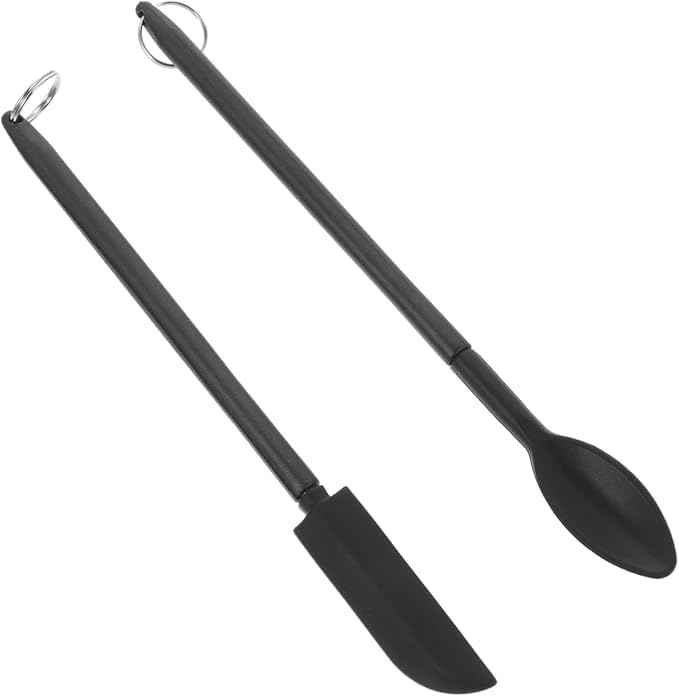 Generic - مجموعة معالق سباتولا صغيرة بتصميم تلسكوبي، مصنوعة من سيليكون آمن غذائيا، ومصممة بشكل مريح للاستخدام في المكياج والخبز، أسود