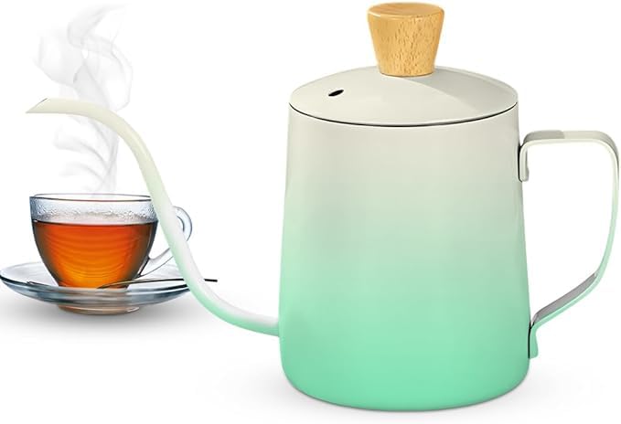 Generic - ابريق شاي صغير بغطاء من الستانلس ستيل بتصميم كلاسيكي للقهوة والشاي مع فوهة ضيقة طويلة وتصميم متين للاستخدام في المنزل والمكتب والسفر (اصفر واخضر)