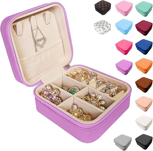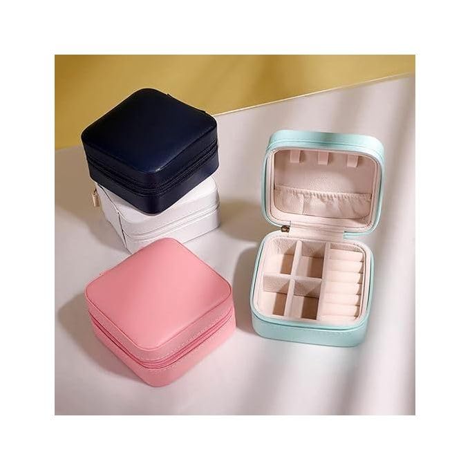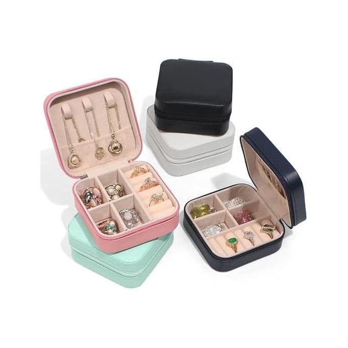- COMPACT DESIGN: Small travel-sized jewellery box measuring approximately 10 cm square, perfect for keeping accessories organised while on the go