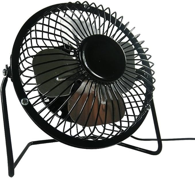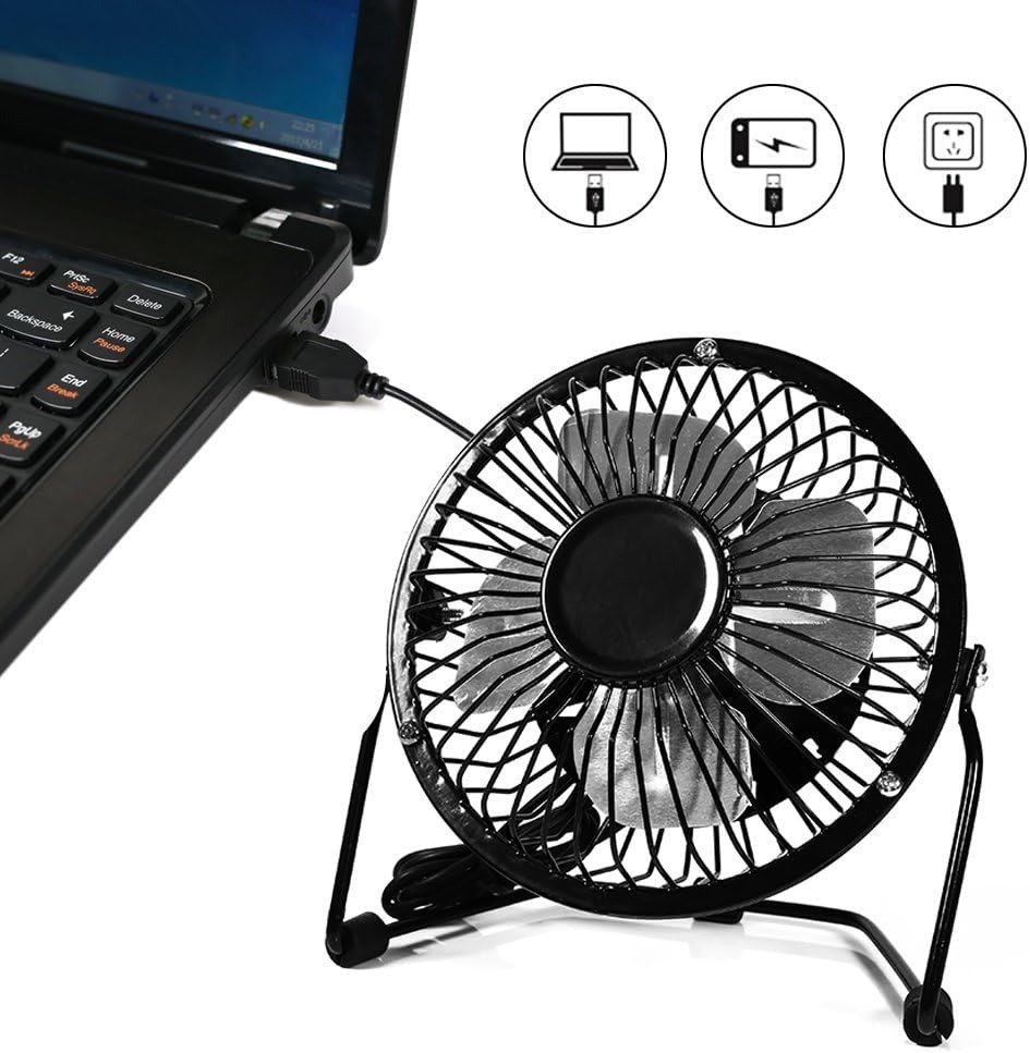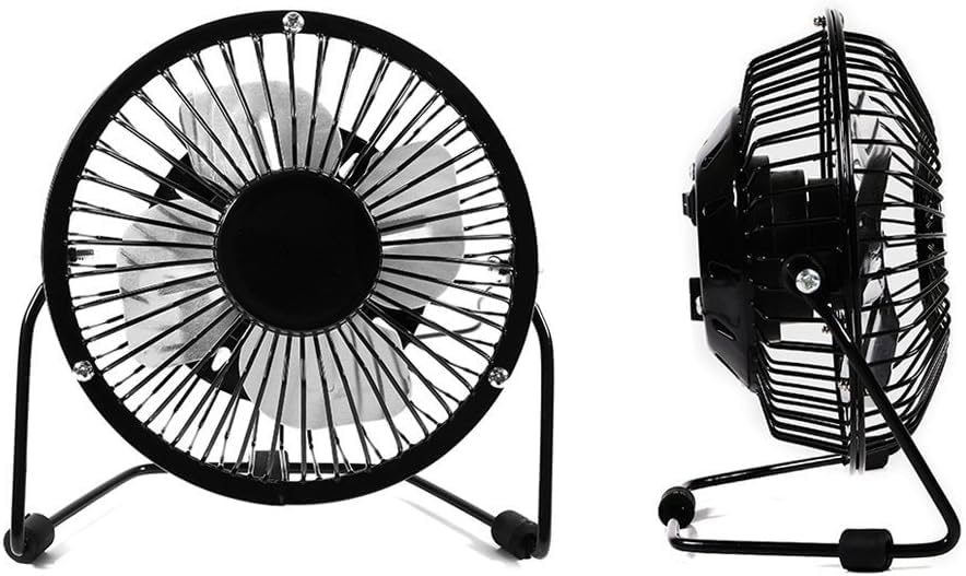 Generic - Mini USB Desk Fan, Portable Personal Fan, Black Metal, Small Size, Quiet Operation, Tilt Adjustable, Office Home Desktop Cooling