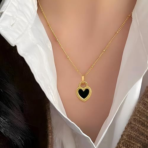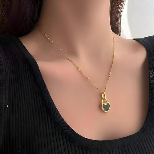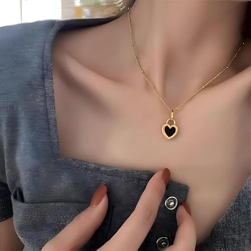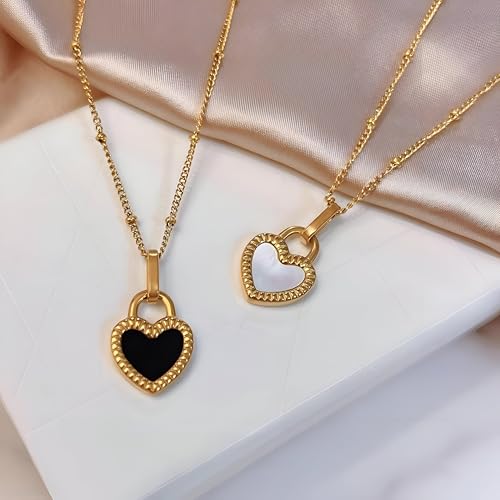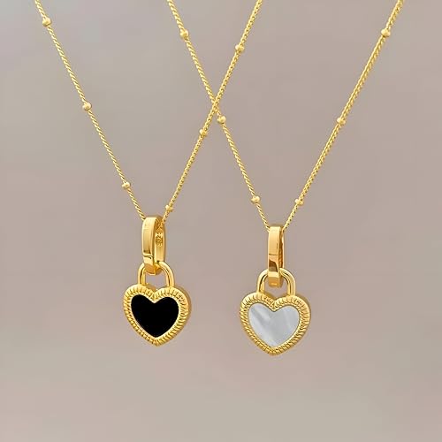 Generic - Minimalist Stainless Chain - Thin double-faced heart pendant in white and black, designed for daily wear, durable and hypoallergenic for sensitive skin.