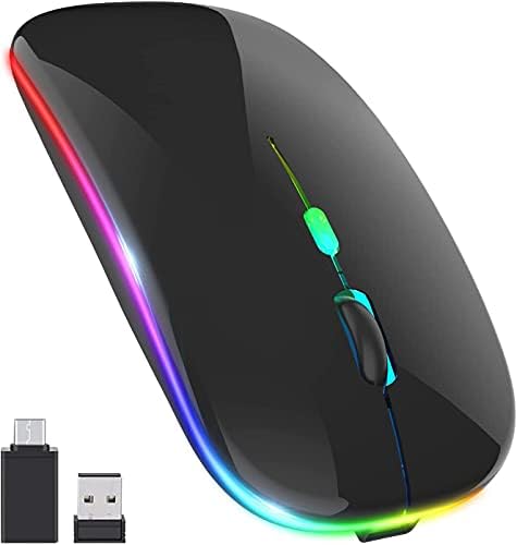Minos - Minos LED Wireless Mouse, Rechargeable Slim Silent 2.4G Portable Mobile Optical Office Mouse with USB & Type-c Receiver, 3 Adjustable DPI for Notebook, PC, Laptop, Computer, Desktop (Black)