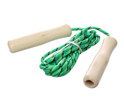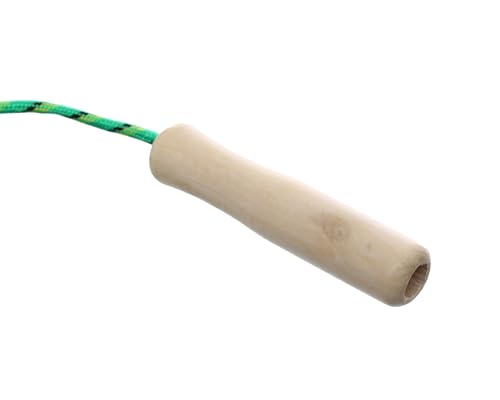 - Durable PVC rope with wooden handles for grip.