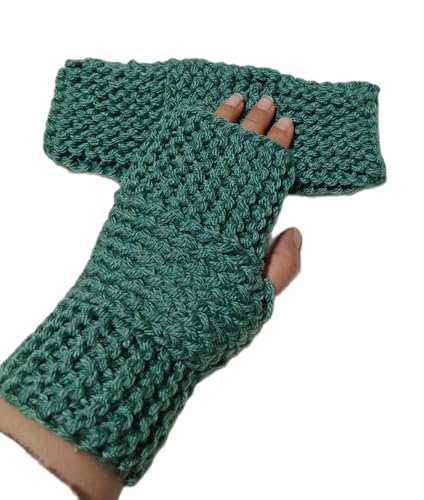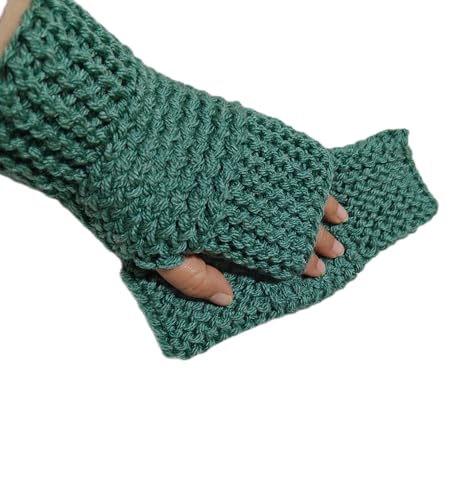 Generic - Mint Green Fingerless Crochet Gloves, Hand Knitting Wool, Winter Warm