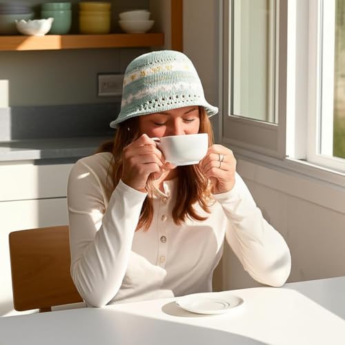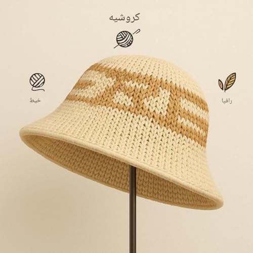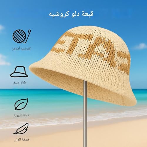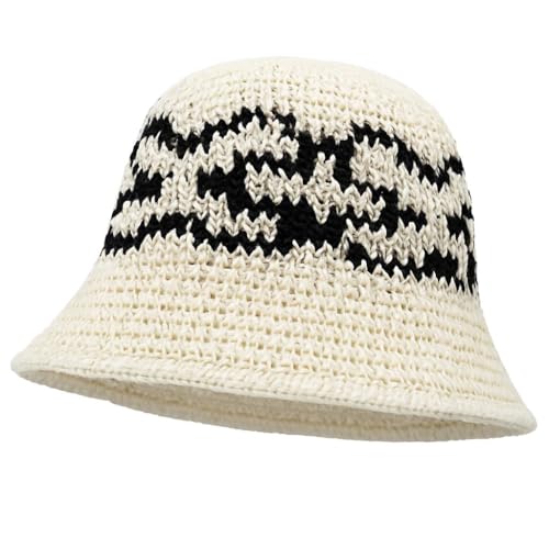 Generic - Mint Striped Hat - Unique Crochet Straw Summer Design, Lightweight and Stylish for Beach Adventures, Offering Comfort and Sun Protection for All Occasions