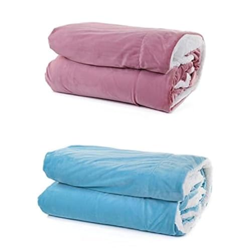 Mintra - بطانية فلانيل منزلية من مينترا قماش شيربا فائق النعومة وردي ترابي 1.7 ×2.1 متر كبيرة + تركواز 2.21 × 2.41 X Large