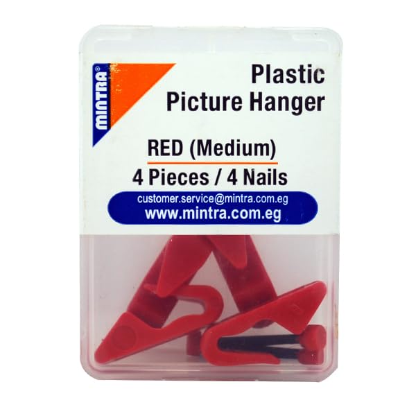 Mintra - Mintra Medium Plastic Hooks Red 4 Hooks + 4 Screws Model 96458