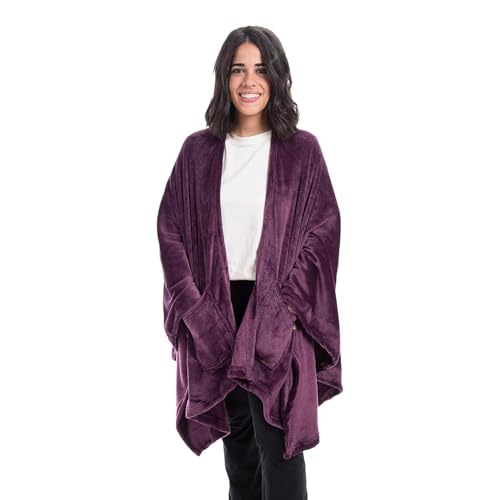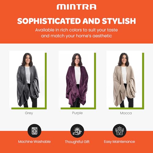 Mintra - بطانية حرارية للجنسين من منترا، مصنوعة من المايكروفايبر البوليستر، باللون البنفسجي، مقاس موحد، بتصميم عصري مع جيب