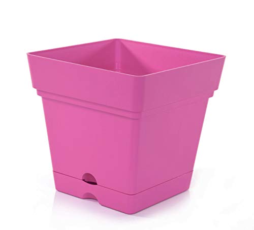 Mintra - ستاند وعاء زراعة مربع مع طبق فوشيا 18 سم تعبئة