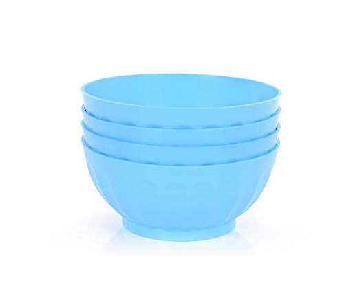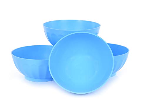 Mintra - Mintra Unbreakable Plastic Bowl, BLUE 4pk - Large, 1.8L, 60oz, 7.75inW x 3.25inH - (Part Of A Set) - Salad, Snacks, Breakfast Cereal, Fruit, Popcorn, Soup, Colorful, Shatterproof, BPA Free