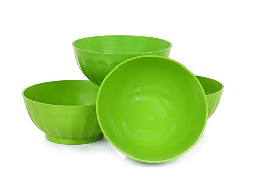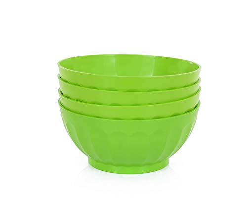 Mintra - Mintra Unbreakable Plastic Bowl, GREEN 4pk - Large, 1.8L, 60oz, 7.75inW x 3.25inH - (Part Of A Set) - Salad, Snacks, Breakfast Cereal, Fruit, Popcorn, Soup, Colorful, Shatterproof, BPA Free