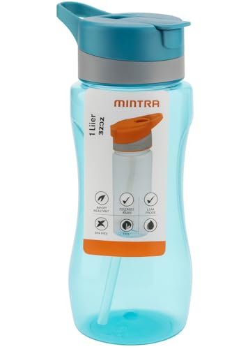 Mintra - Mintra Water Plastic Bottle, 1 L, Assorted Colors, Model 18147