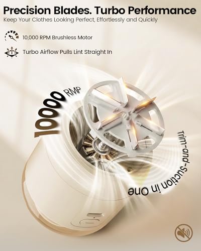 - ⚙️ 𝐔𝐥𝐭𝐢𝐦𝐚𝐭𝐞 𝐅𝐚𝐛𝐫𝐢𝐜 𝐑𝐞𝐣𝐮𝐯𝐞𝐧𝐚𝐭𝐢𝐨𝐧 𝐖𝐢𝐭𝐡 𝟔 𝐒𝐞𝐥𝐟-𝐒𝐡𝐚𝐫𝐩𝐞𝐧𝐢𝐧𝐠 𝐁𝐥𝐚𝐝𝐞𝐬: Revolutionize your fabric care with 6 professional-grade, self-sharpening stainless steel blades, powered by a high-speed brushless motor. The six-blade turbo-fan cutter generates powerful suction while trimming, drawing lint directly into the extra-large collection chamber for a clean, no-scatter finish. This industrial-grade combination effortlessly shaves away stubborn bobbles, pills, and fuzz from jumpers, knitwear, and sweaters, restoring even delicate cashmere and wool to a smooth, like-new condition without any damage
