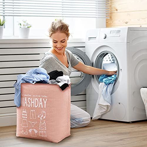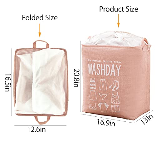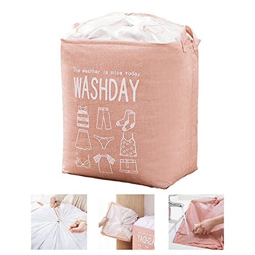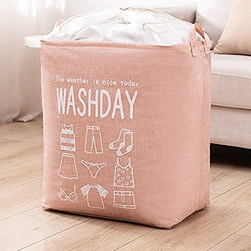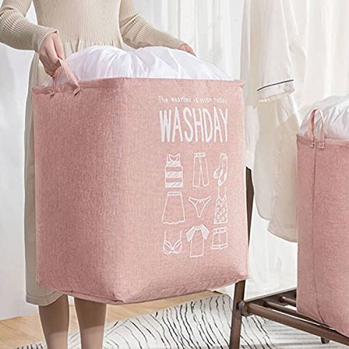 MIPON - شنطة تخزين ملابس غسيل سعة 75 لتر من ميبون، شنطة للملابس المتسخة قابلة للطي ومناسبة للاستخدام في غرفة النوم، سبت غسيل مقاوم للماء مناسب للحضانات، منظم غسيل اساسي للسكن الجامعي (لون بينك)