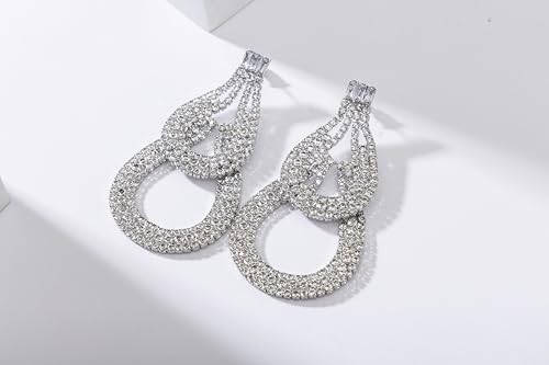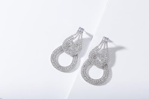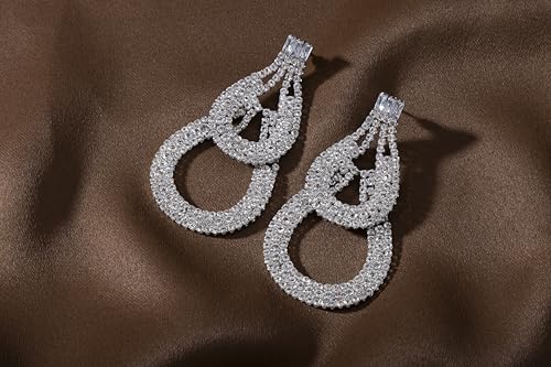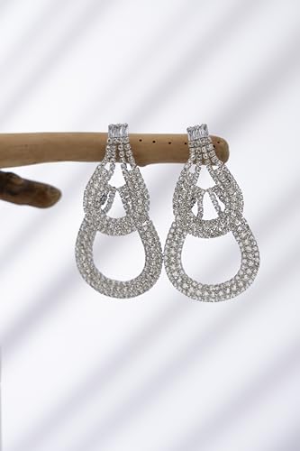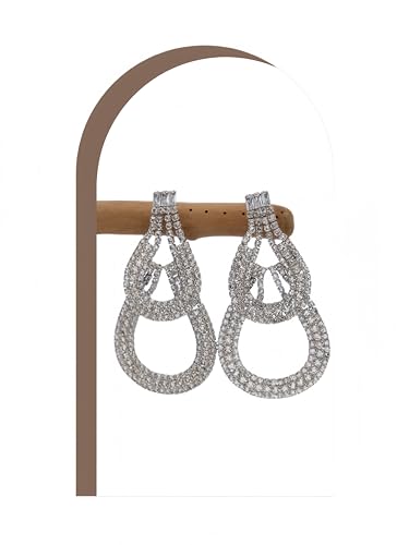 Mira Kids - Mira Kids حلق نسائي أنيق من نحاس مطلي بلاتين بتصميم فخم متداخل مرصع بفصوص زركون براقة للمناسبات والسهرات