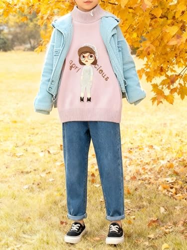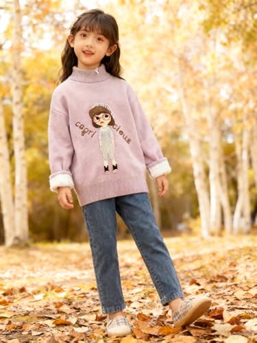 Mira Kids - Mira Kids بلوفر بناتي شتوي مطرز بشخصية كرتونية – خامة نايلون ناعمة دافئة – متوفر بعدة ألوان ومقاسات من 140 إلى 180 – ياقة عالية وأكمام مرنة بتصميم عصري