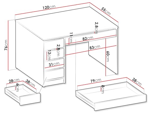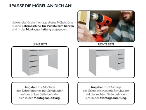 Mirjan24 - Mirjan24 Ada Desk, 5 Universal Drawers, Student Desk, Computer Desk, Children's Desk, Work Table, PC Table, Teenager's Room, Children's Room (Black)