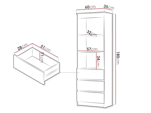Mirjan24 - Mirjan24 Harvard RS-60 Standing Shelf, Bookcase with 3 Compartments and 3 Drawers, Universal Shelf Cabinet (White)