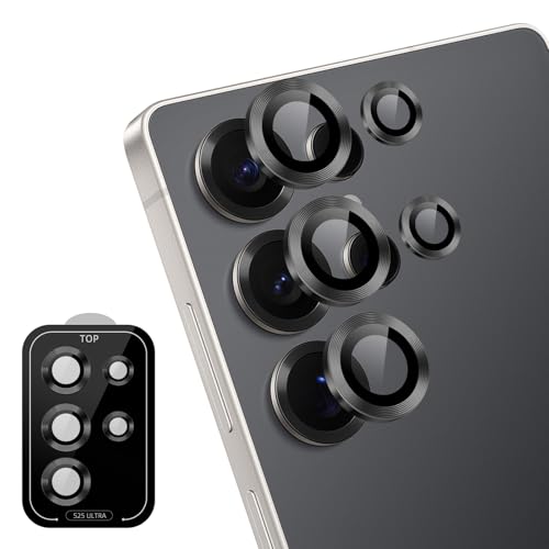 MiRowy - طبقة حماية لكاميرا سامسونج جالاكسي S25 الترا 5G من ميرووي، عدسة فردية من خليط معدني من الألومنيوم بدرجة صلابة 9 من الزجاج المقوى لموبايل سامسونج جالاكسي S25 الترا شبكة الجيل الخامس 5G، لون أسود