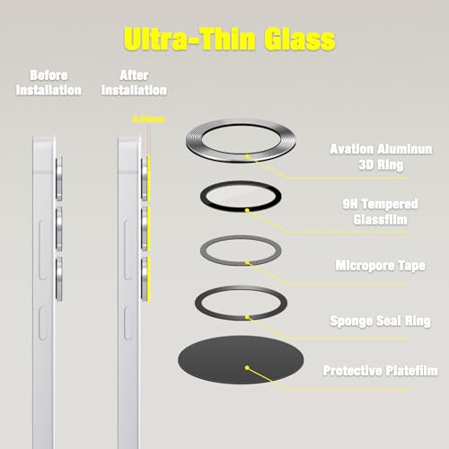 - حماية شاملة: الطبقة الواقية لعدسة الكاميرا مصنوعة من خليط الألومنيوم المستخدم في صناعة الطائرات والزجاج المقوى بدرجة صلابة 9، وتتميز بخصائص الصلابة العالية ومقاومة الخدش والسقوط، وحلقة الإغلاق مقاومة للماء والغبار، مما يوفر حماية شاملة لعدساتك