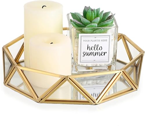 - Unique Geometric Tray - Special geometric shape,the clear glass wall and mirror base combined with the golden frame.Not only durable quality,exquisite workmanship, but also low-key luxury feel and elegant.Perfect for classify and store cosmetic skin care products, save space, keep your dresser clean and tidy