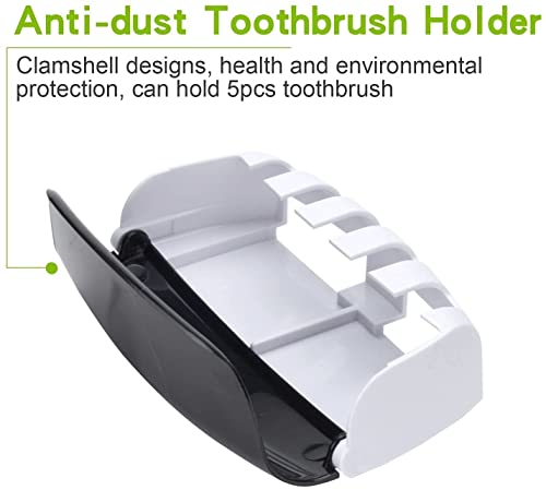 Misaki - Misaki Toothbrush Holder Toothpaste Dispenser Set Dustproof Kids Hands Free Toothpaste Squeezer for Family Washroom Bathroom (Black)