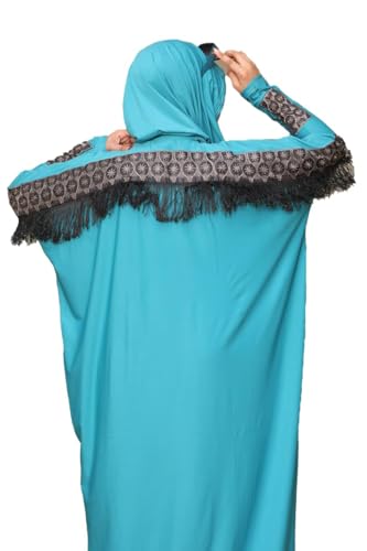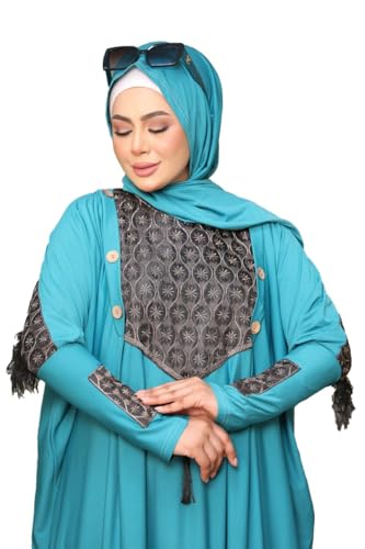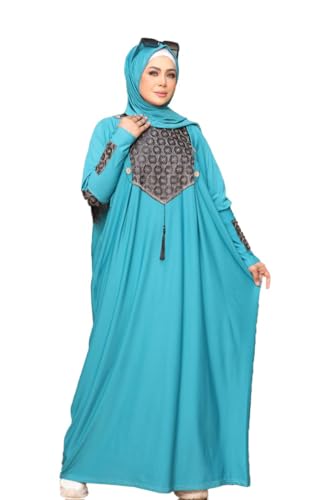 MISK - مسك عباية رويال كريب للنساء، لون تركواز، مقاس واحد