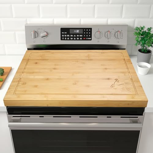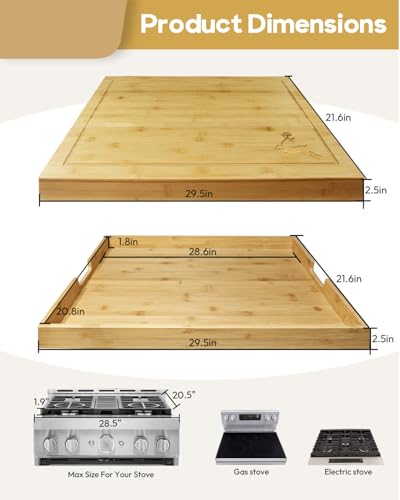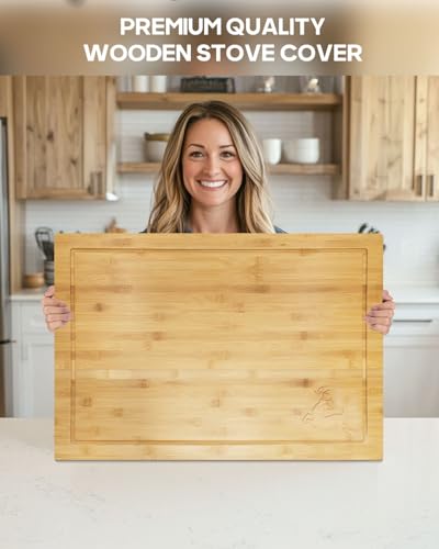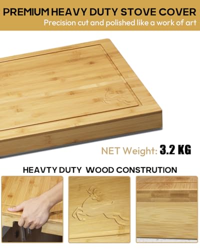 mismo sol - غطاء موقد نودلز سول من ميسمو، اغطية علوية من خشب الخيزران للموقد الكهربائي ومواقد الغاز، غطاء الحوض يزيد من مساحة المنضدة، هيكل شديد التحمل (نمط حيوان الرنة)