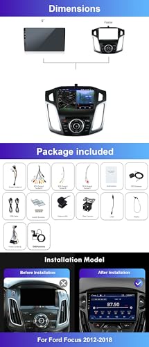 MISONDA - 9" IPS 2 Din Android 14 Car Radio Suitable For Ford Focus 2012-2017- [6G+128G] - [Built-in 4G+DAB+HDMI+Carplay+DSP] - [Camera+Mic] GPS SWC BT 4G WiFi AUX DAB Head Unit