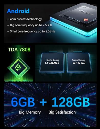 - The latest version Android system,equiped with 8-core 64 bit processor.Ultra-low power consumption 14nm process automotive grade chip.Built in 6GB RAM + 128GB ROM, allows you to download your favorite apps. 【IPS HD Screen】 New upgrade to the HD screen with up to 1280*800 resolution.with the IPS quantum screen, it fills the entire screen with amazing resolution and brilliant colors, ,making every detail extremely delicate