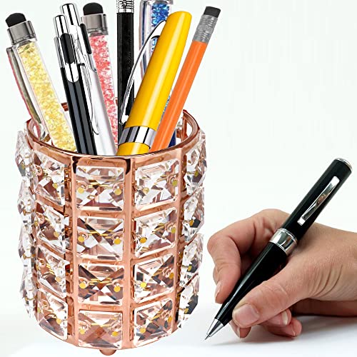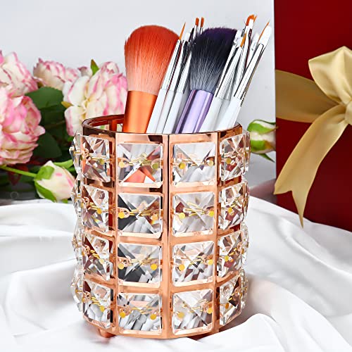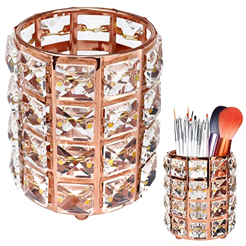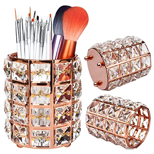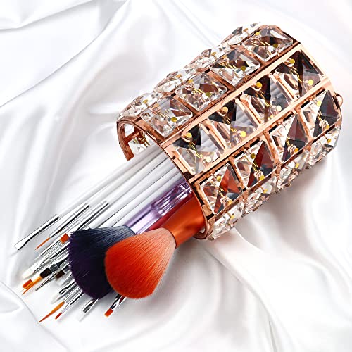 - 🌈 Upgrade Material: Metal material with crystal inlaid. Dimension: approx. 12 cm / 3.94" (Diameter); 12 cm / 4.8" (Height), enough to hold ortment of makeup brushes