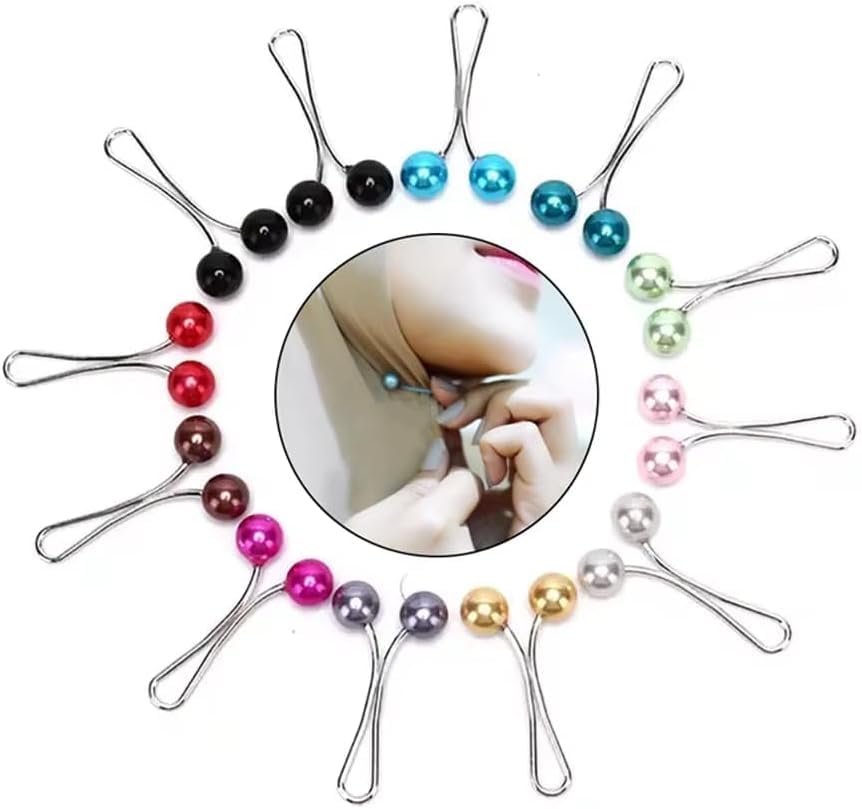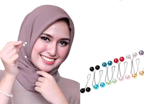Miss Lirenn - 12PCS Multicolor Cute Hijab Pins Crystal Rhinestone Ball Pearl Brooch Pins Headscarf Shawl Scarf Muslim Hijab Scarf Clips Safety Pins Buttons Wedding Dress Decorative Boutonniere