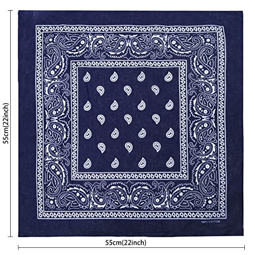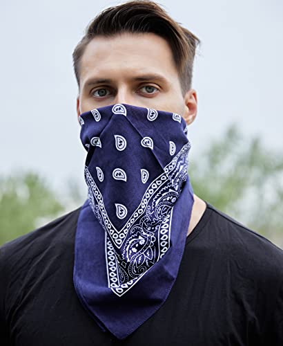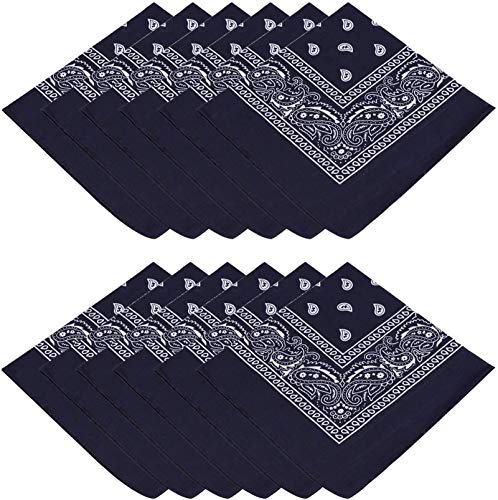 MissShorthair - مجموعة باندانات من ميس شورت هير مقاس L مصنوعة من القطن بتصميم جديد ومزينة بطبعة بيزلي، باندانا بتصميم رعاة البقر للرجال والنساء- مكونة من 12 قطعة, D-Navy Bandana-12 قطعة, One Size
