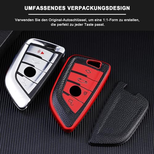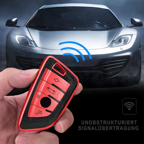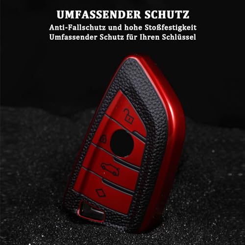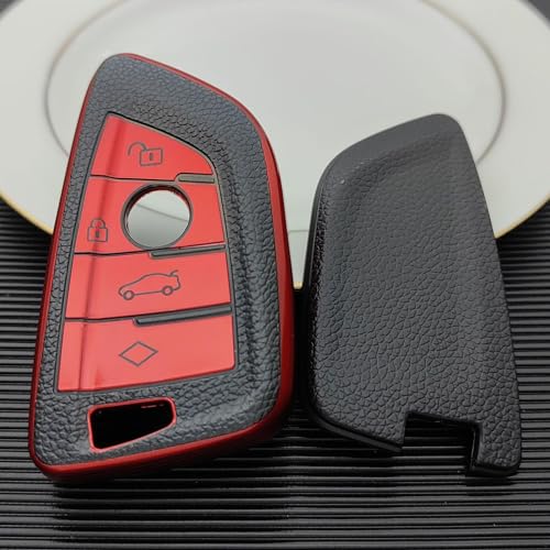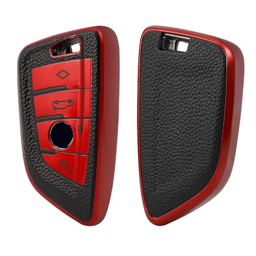 Misuyue - Misuyue BMW Key Cover, BMW Key Case for BMW X1 X2 X3 X5 X6 BMW 1 2 3 4 5 6 7 Series, BMW X1 Key Cover, 4 Buttons Leather and TPU BMW Key Cover (Red)