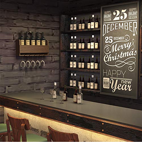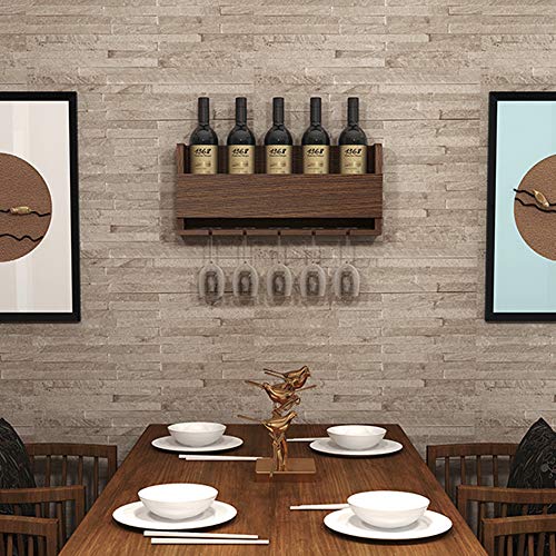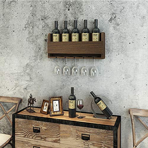 MITIME - MITIME Floating Wine Shelf and Glass Rack Set Wall Mounted Paulownia Wood Wine Rack 5 Bottle 5 Long Stem Glass Holder