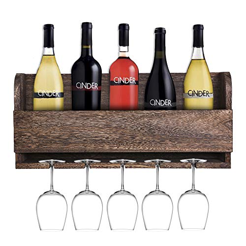 - Holds 5 bottles and 5 glasses / Rustic style.