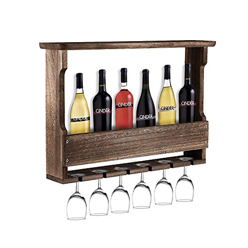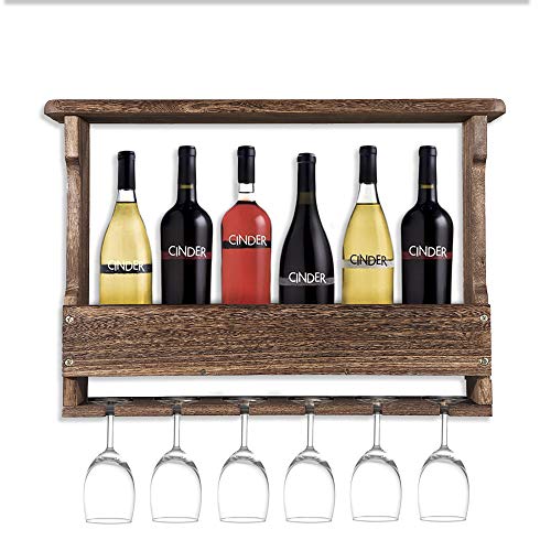 - Holds 6 bottles and 6 glasses / Rustic style.