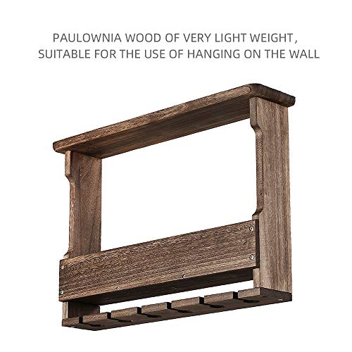 MITIME - MITIME Floating Wine Shelf and Glass Rack Set Wall Mounted Paulownia Wood Wine Rack 6 Bottle 6 Long Stem Glass Holder
