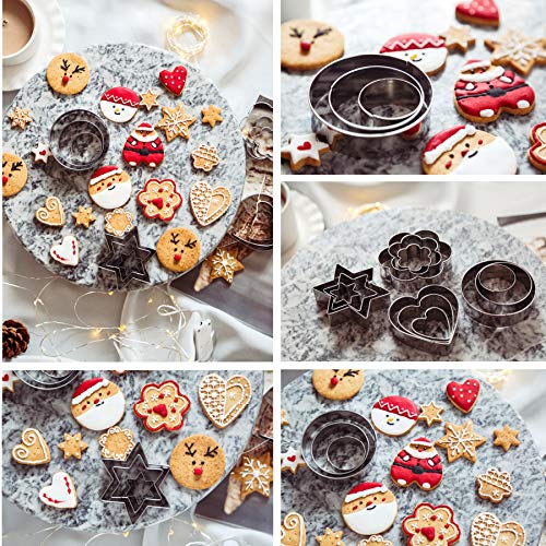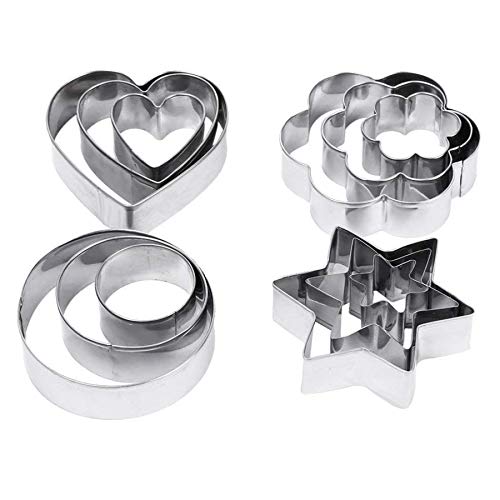 Miukada - قطاعات كوكيز من الفولاذ المقاوم للصدأ قطاعة بسكويت، قوالب خبز على شكل دائرة ونجمة وقلب وزهرة من ميوكادا، 12 قطعة