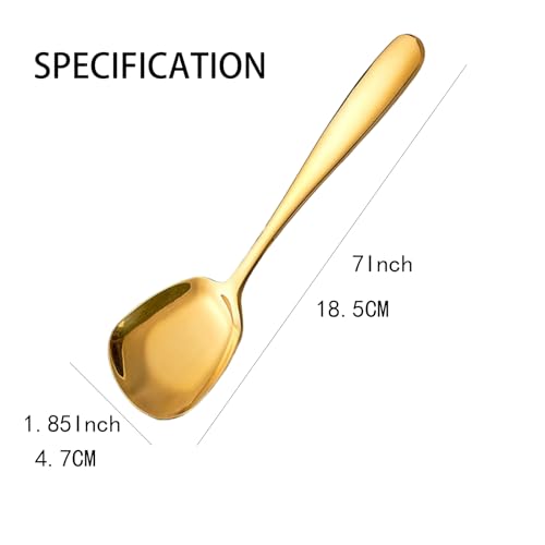 MIUPOO - ميوبو ملاعق مربعة الشكل، ملعقة سكر مربعة على الطراز الكوري، ملاعق حساء سميكة وثقيلة من الستانلس ستيل، ملاعق عشاء مربعة مسطحة، 7 انش/18.5 سم، مجموعة من 4 قطع، ذهبي