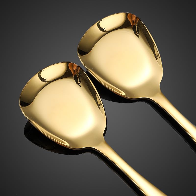 - 【محتويات العبوة】4 قطع من ملاعق الحساء ذات الرأس المربع الذهبي. المقاس: 18.5 سم × 4.7 سم / 7 انش × 1.85 انش (الطول × العرض). الوزن 55 غرام، وهو مناسب جدًا لثلاث وجبات يوميًا وشاي بعد الظهر.