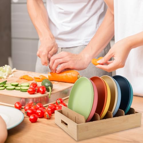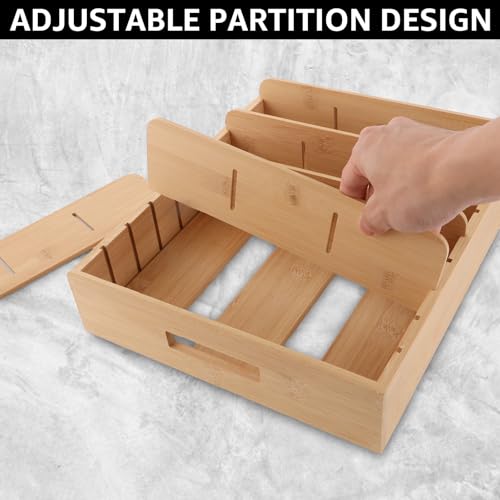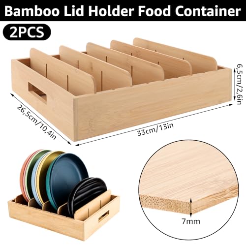 MIVIDE - MIVIDE Pack of 2 Bamboo Pot Lid Storage, Lid Organiser Kitchen with 5 Adjustable Dividers & Handles, Bamboo Pot Lid Holder for Storage, Pot Lid, Spices, Tea Towel