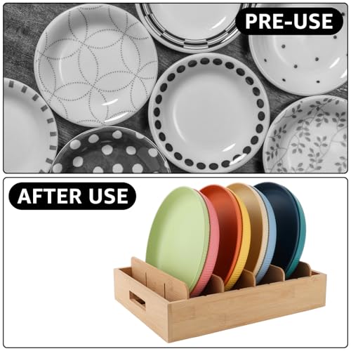 - Adjustable divider: the lid holder made of bamboo has 5 removable adjustable dividers. You can adjust the divider according to your needs, so that the lid box can be stored neatly and is more convenient to take