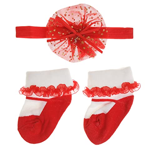 Mix and Max - Cotton Set of 2 Pieces HeadBand & Socks Shapes For Girls-Red & Off White