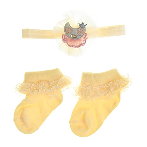 Mix and Max - Cotton Set of 2 Pieces HeadBand & Socks Shapes For Girls-Yellow