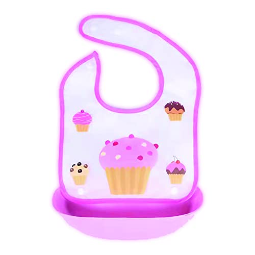 Mix&Max - MIX & MAX Baby Bib With Silicone Pocket Printed Cup Cake For Girls-Pink