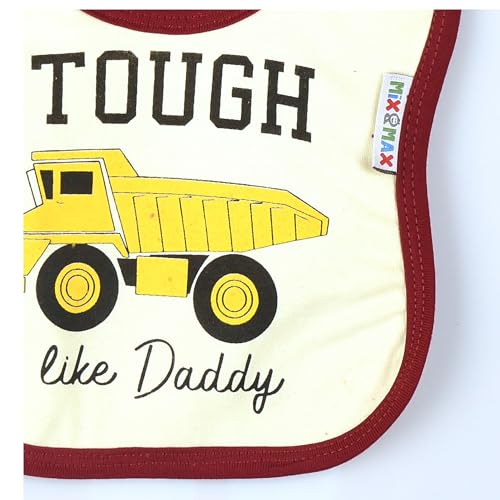 Mix&Max - Mix&Max Cotton Bib Printed Tough Like Daddy For Boys-Yellow&Dark Red