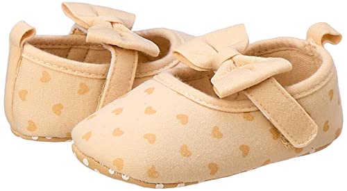 MIX & MAX - حذاء ماري جاين مزين بنقشة قلوب وفيونكة للبنات من ميكس اند ماكس، لون بيج، مناسب لعمر 9-12 شهر, 9 - 12 Months
