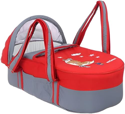 Mix&Max - Mix&Max Microfiber Baby Carrycot With Mosquito Net Embroidered Shapes For Boys-Red&Grey